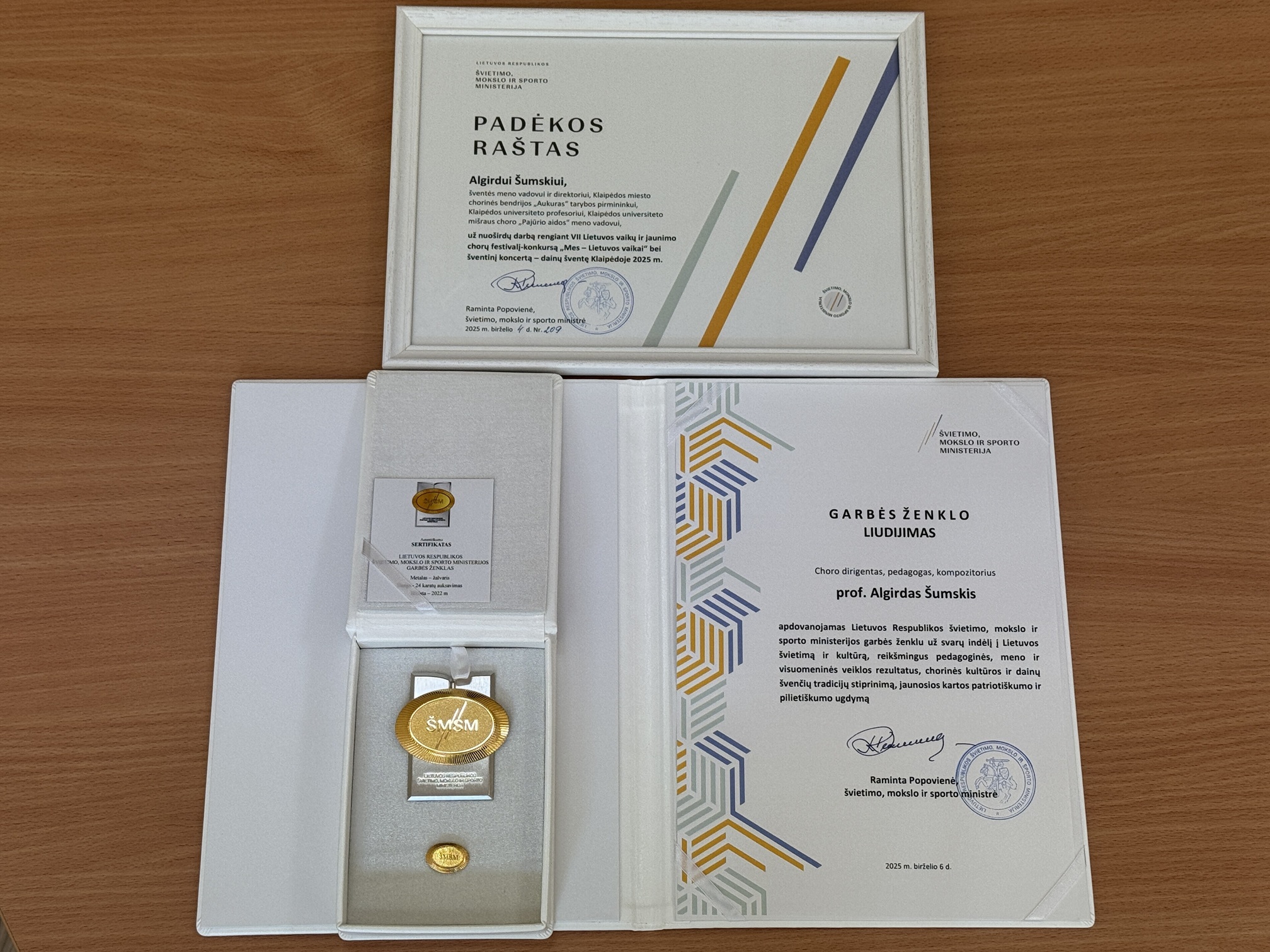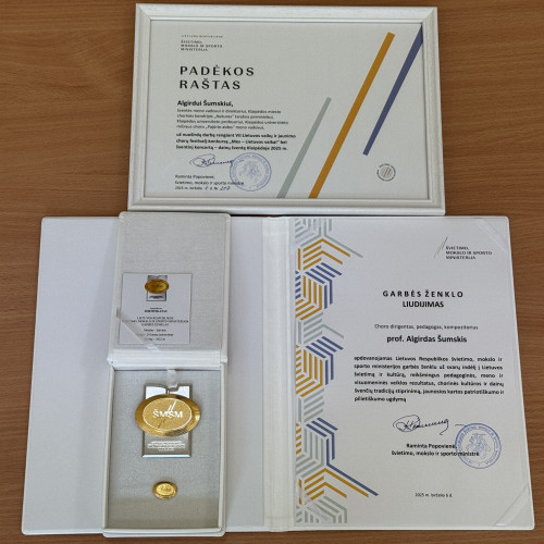 Taip pat Klaipėdoje vykusio finalinio renginio metu prof. Algirdui Šumskiui įteiktas švietimo, mokslo ir sporto ministerijos garbės ženklas – LR Švietimo, mokslo ir sporto ministerijos įsteigtas aukščiausias Garbės ženklo apdovanojimas, skiriamas ypač nusipelniusiems asmenims pagerbti. Jis įvertintas už svarų indėlį į Lietuvos švietimą ir kultūrą, reikšmingus pedagoginės, meno ir visuomeninės veiklos rezultatus, chorinės kultūros ir dainų švenčių tradicijų stiprinimą, jaunosios kartos patriotiškumo ir pilietiškumo ugdymą.