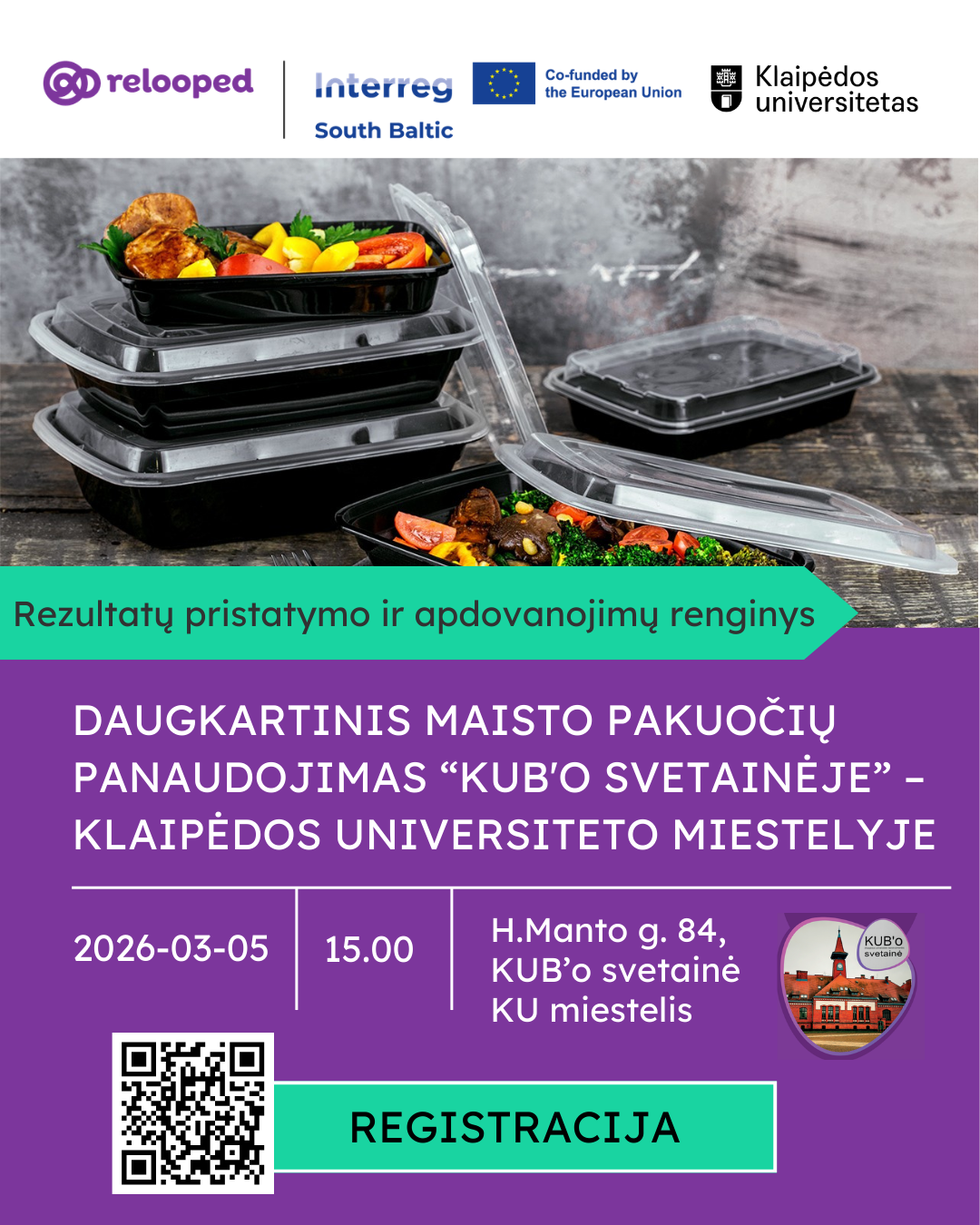DAUGKARTINIS MAISTO PAKUOČIŲ PANAUDOJIMAS “KUB'O SVETAINĖJE” – KLAIPĖDOS UNIVERSITETO MIESTELYJE